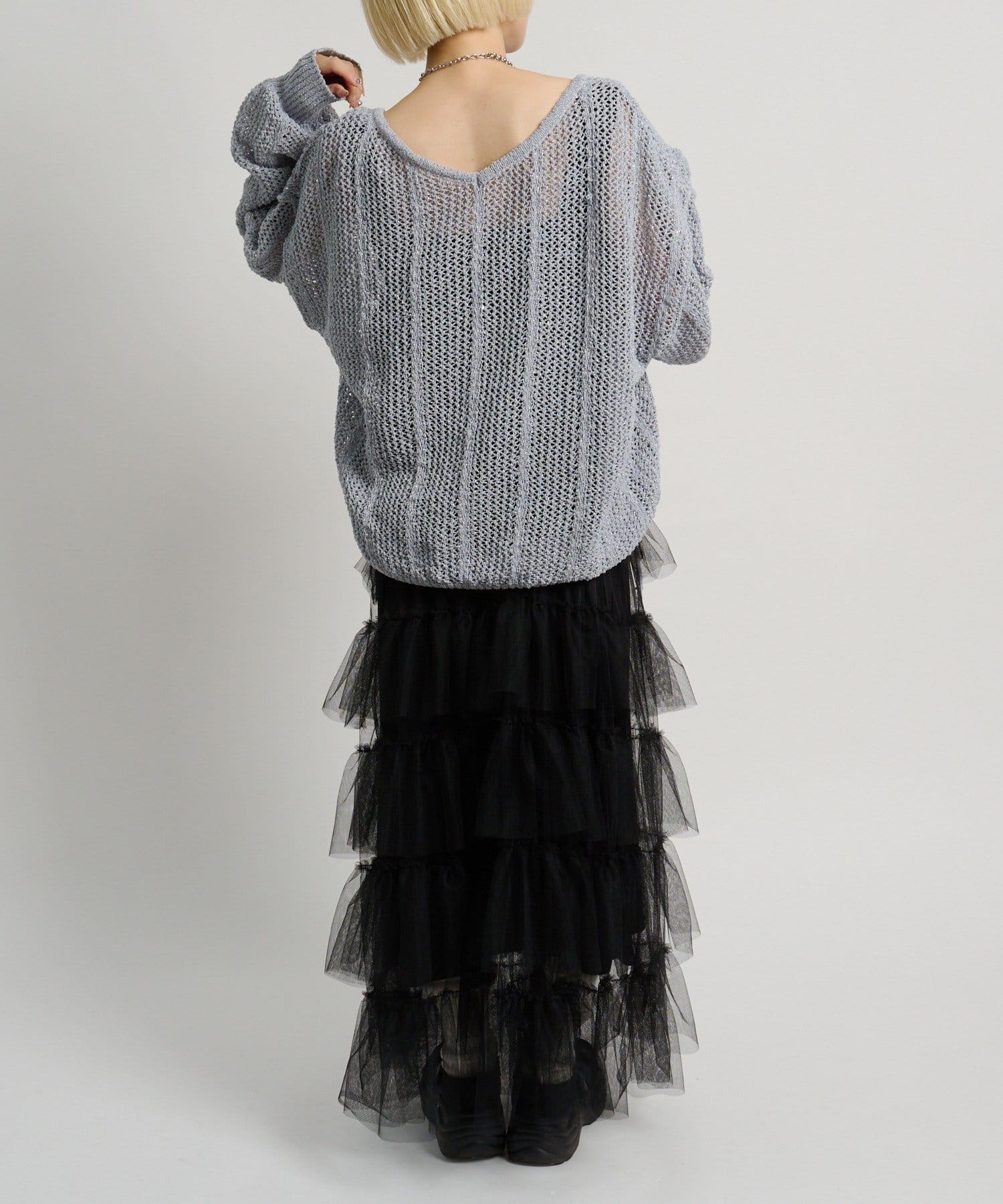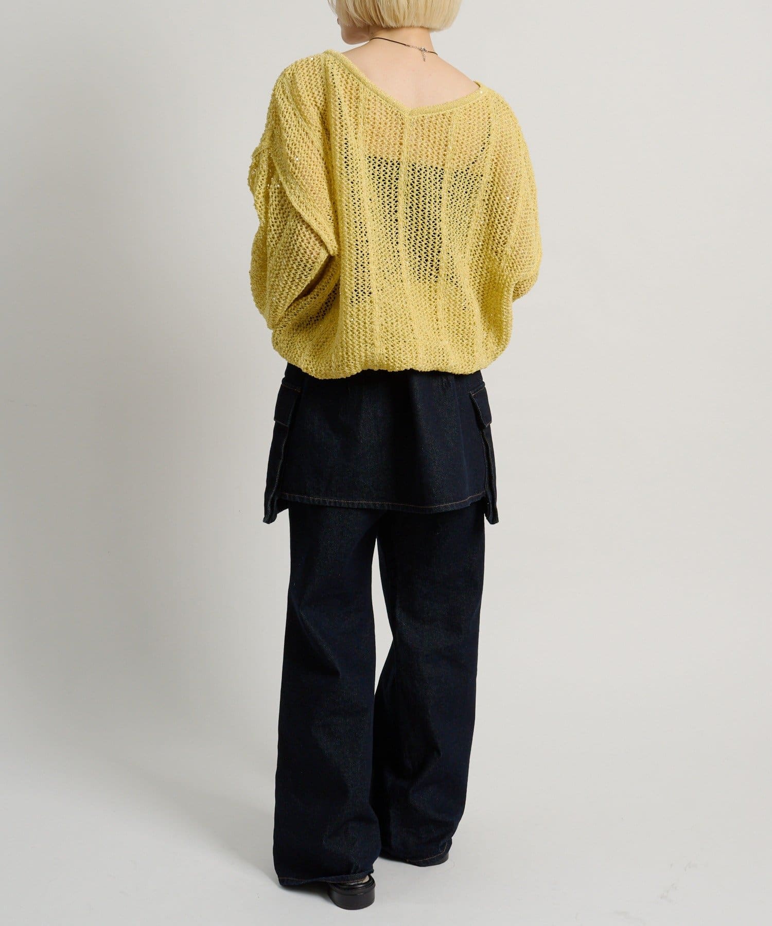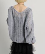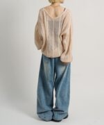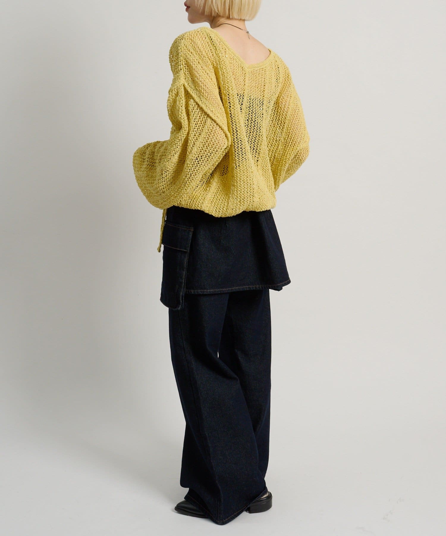 ・ワイドデニムやカーゴパンツと合わせてラフなカジュアルスタイルにニットのきらめきが上品に映えます!
