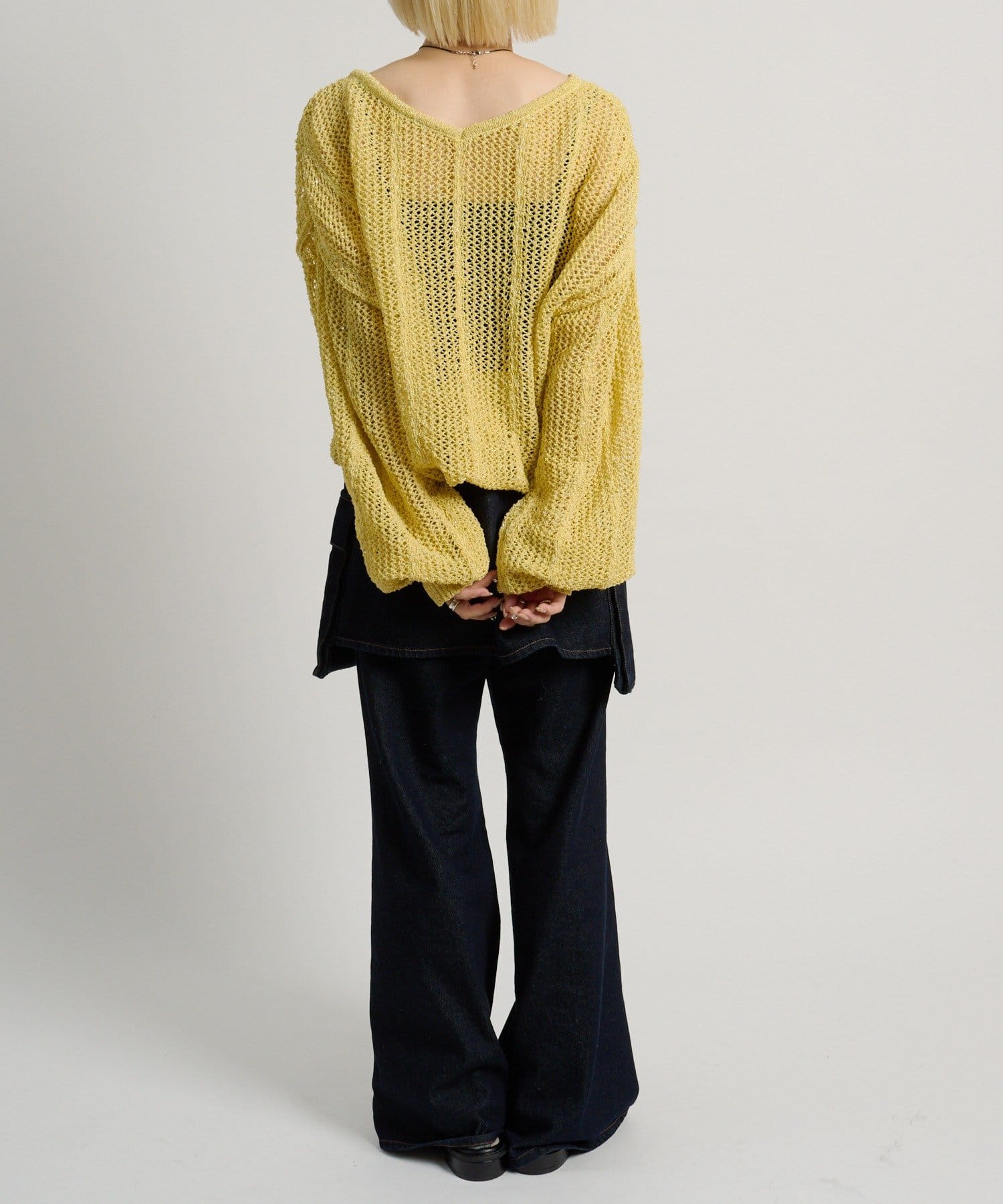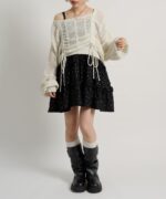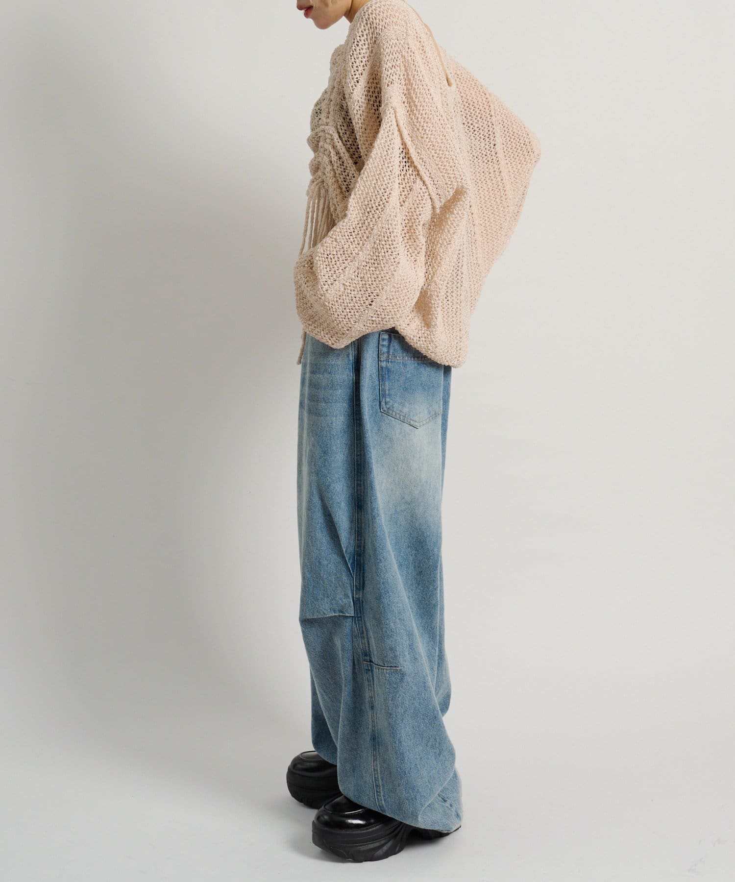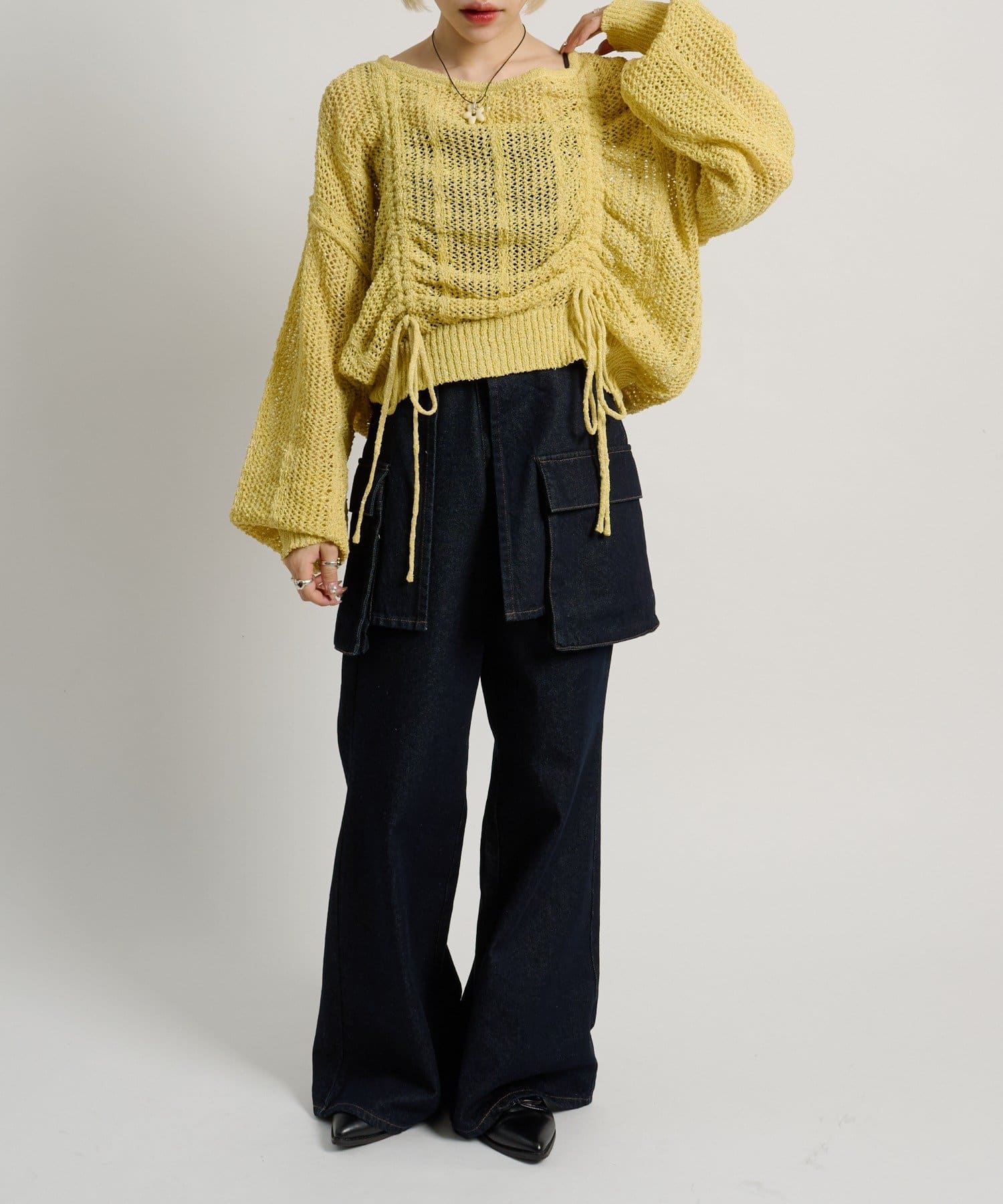 ・ワイドデニムやカーゴパンツと合わせてラフなカジュアルスタイルにニットのきらめきが上品に映えます!