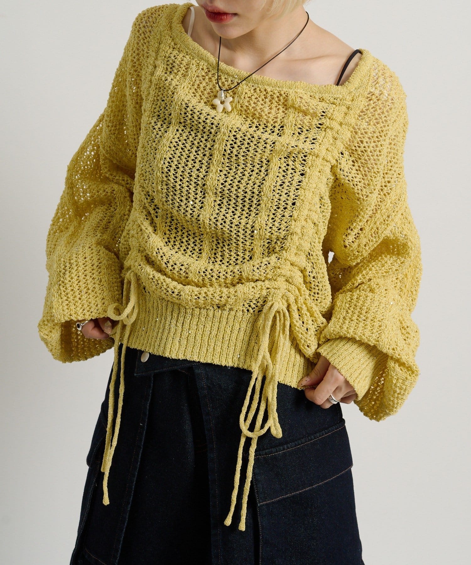 w closet 【5色入】閃亮亮片抽繩針織上衣