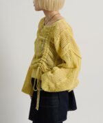精緻閃粉線條揉合亮片織法,打造出閃閃發亮、充滿春日氣息的可愛抽繩針織衫。