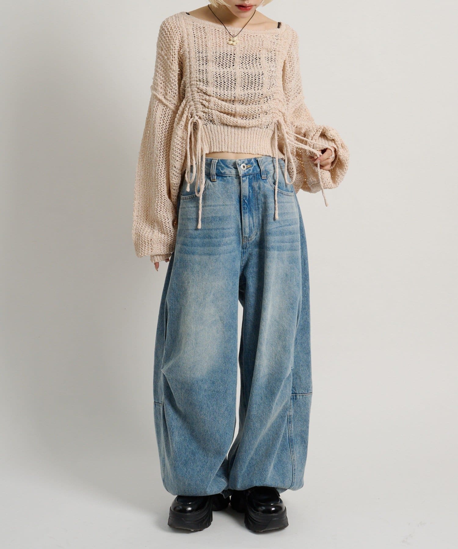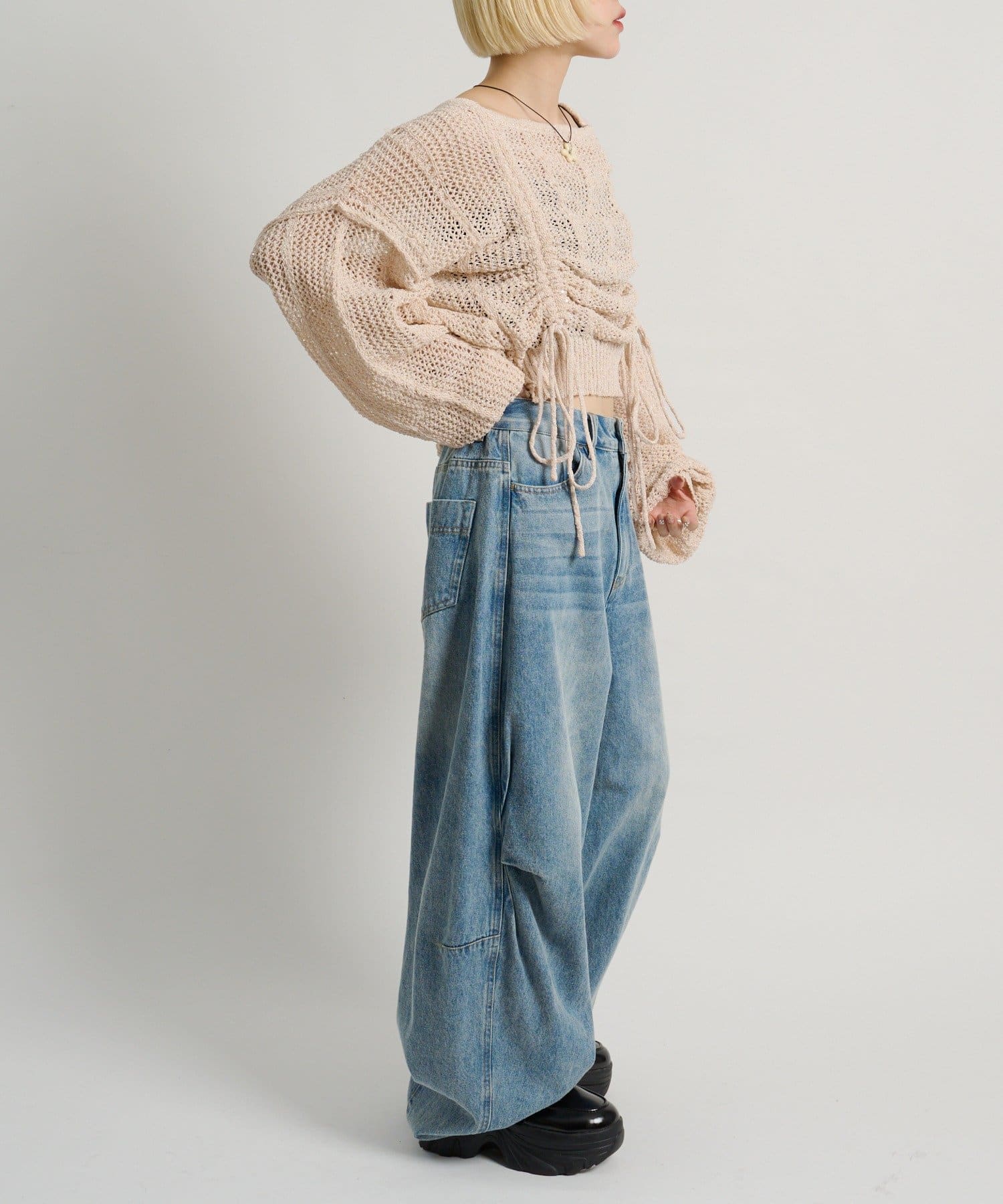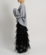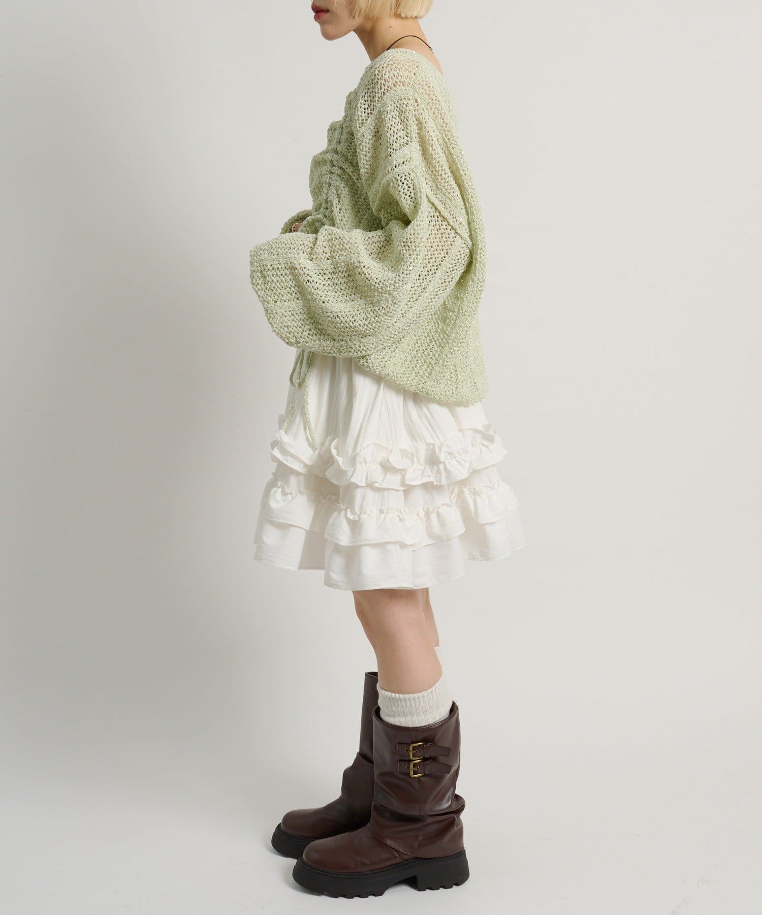 ・ざっくりした編地とボリューム袖で、抜け感のあるバランスに♪
