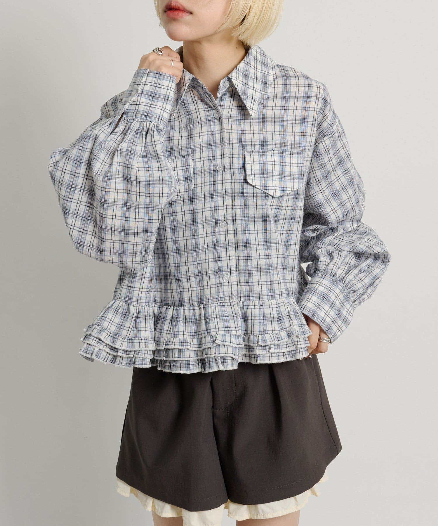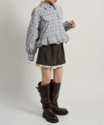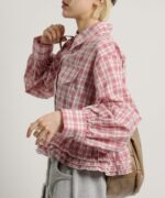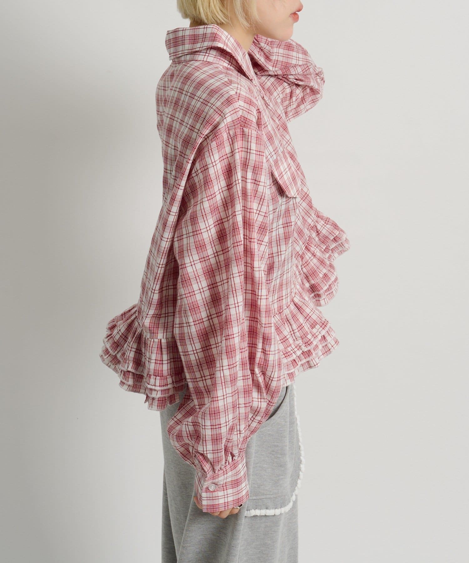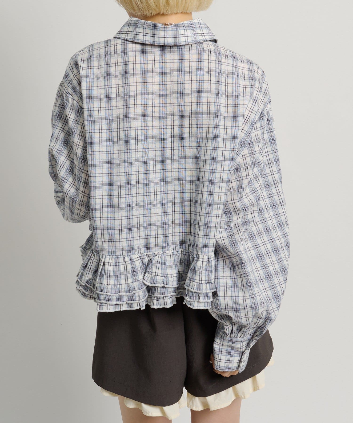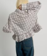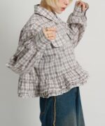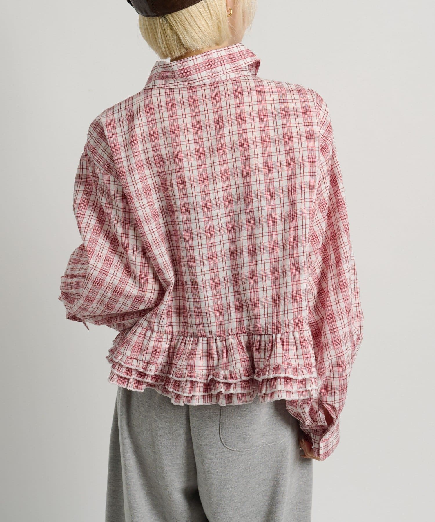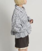 ・裾にあしらったフリルデザインがポイントのチェックシャツ