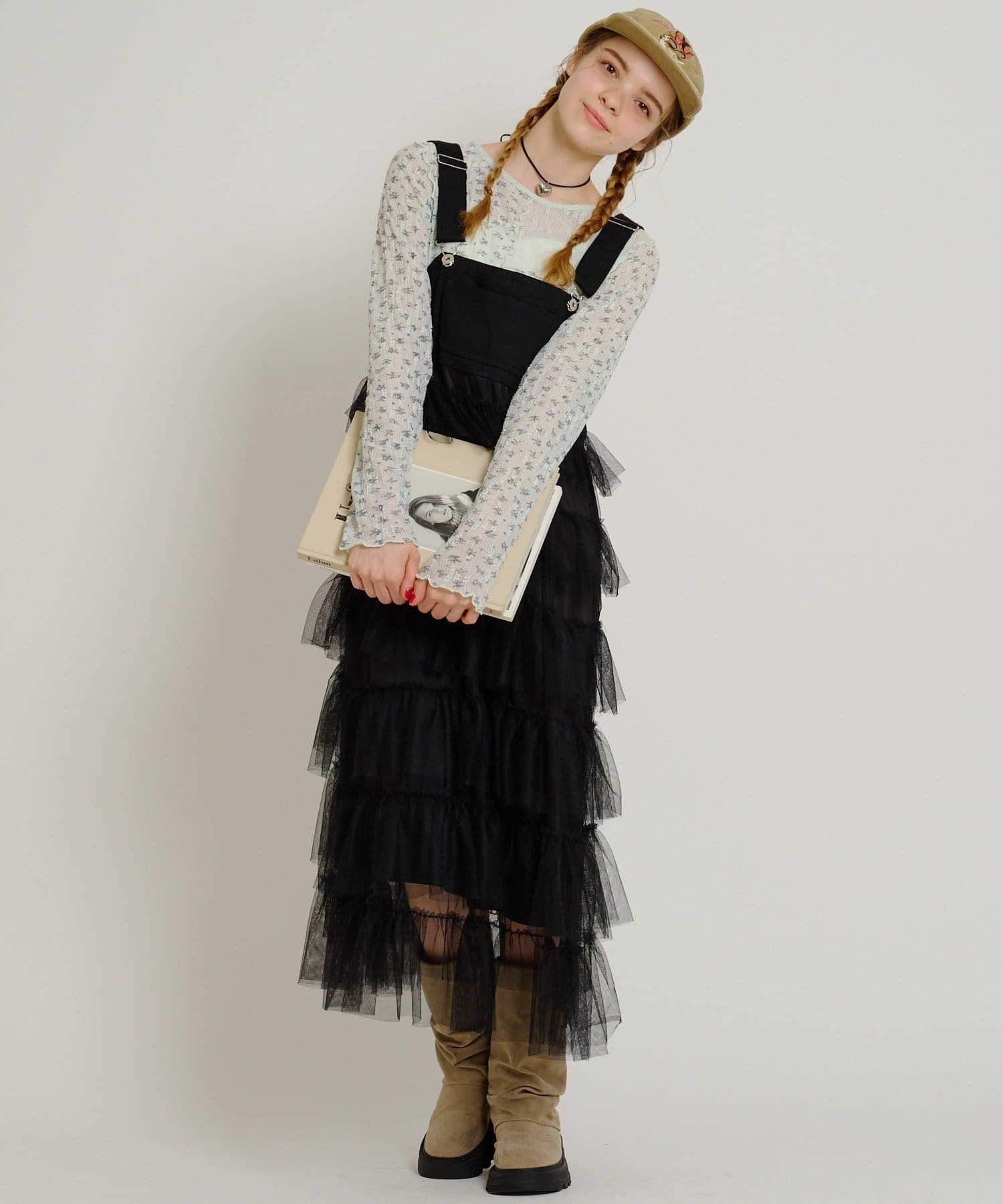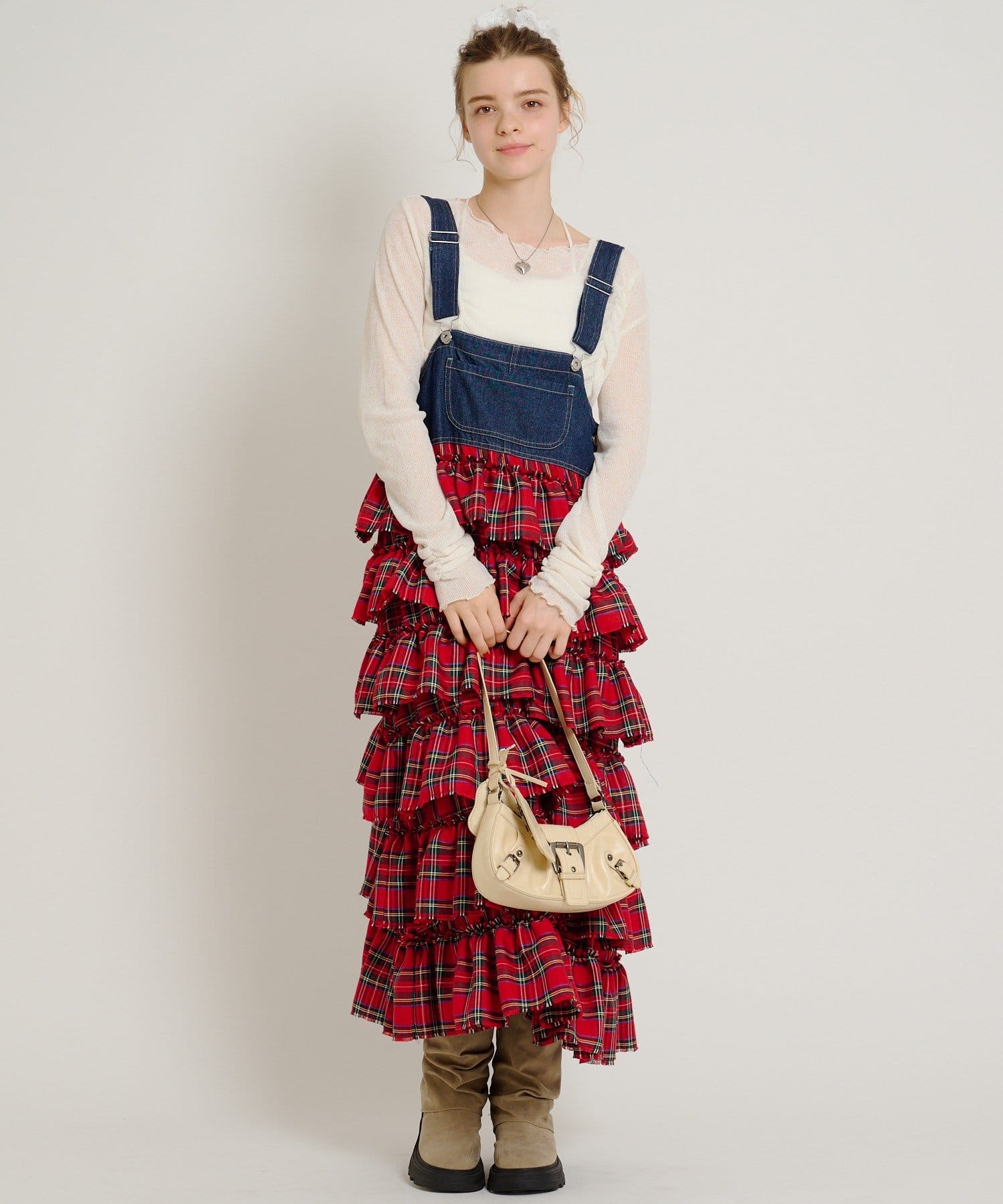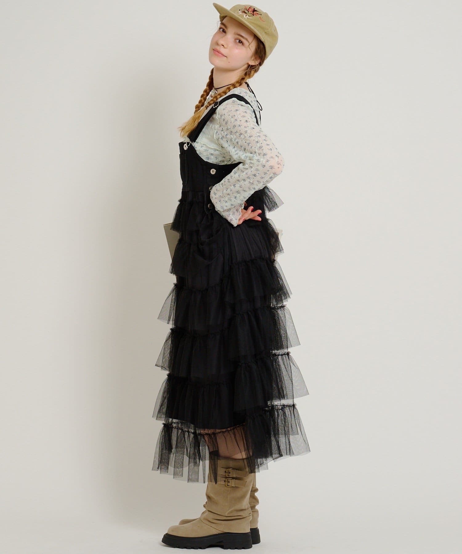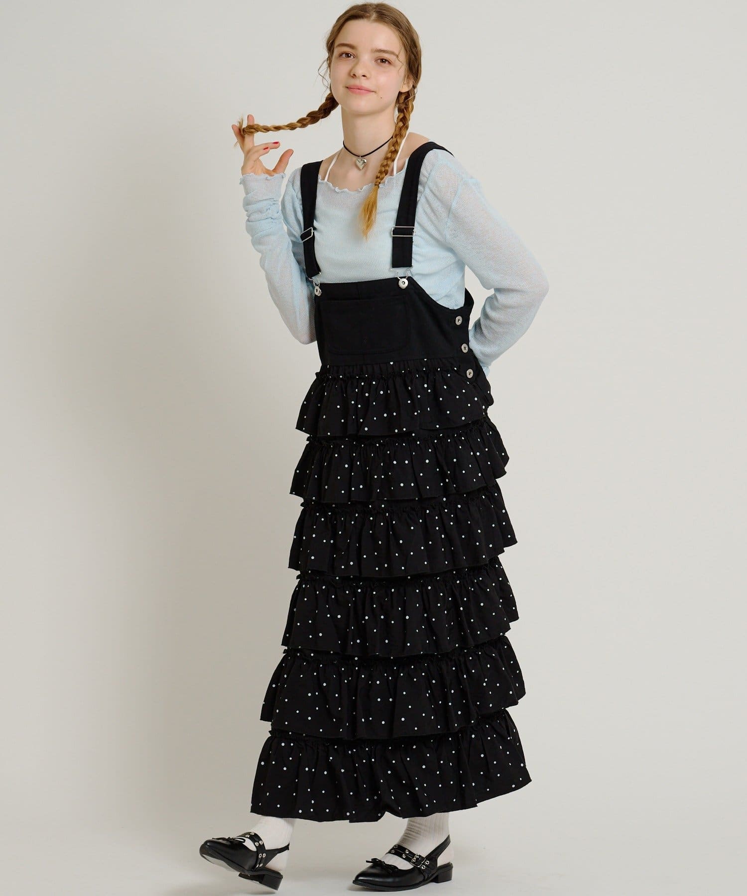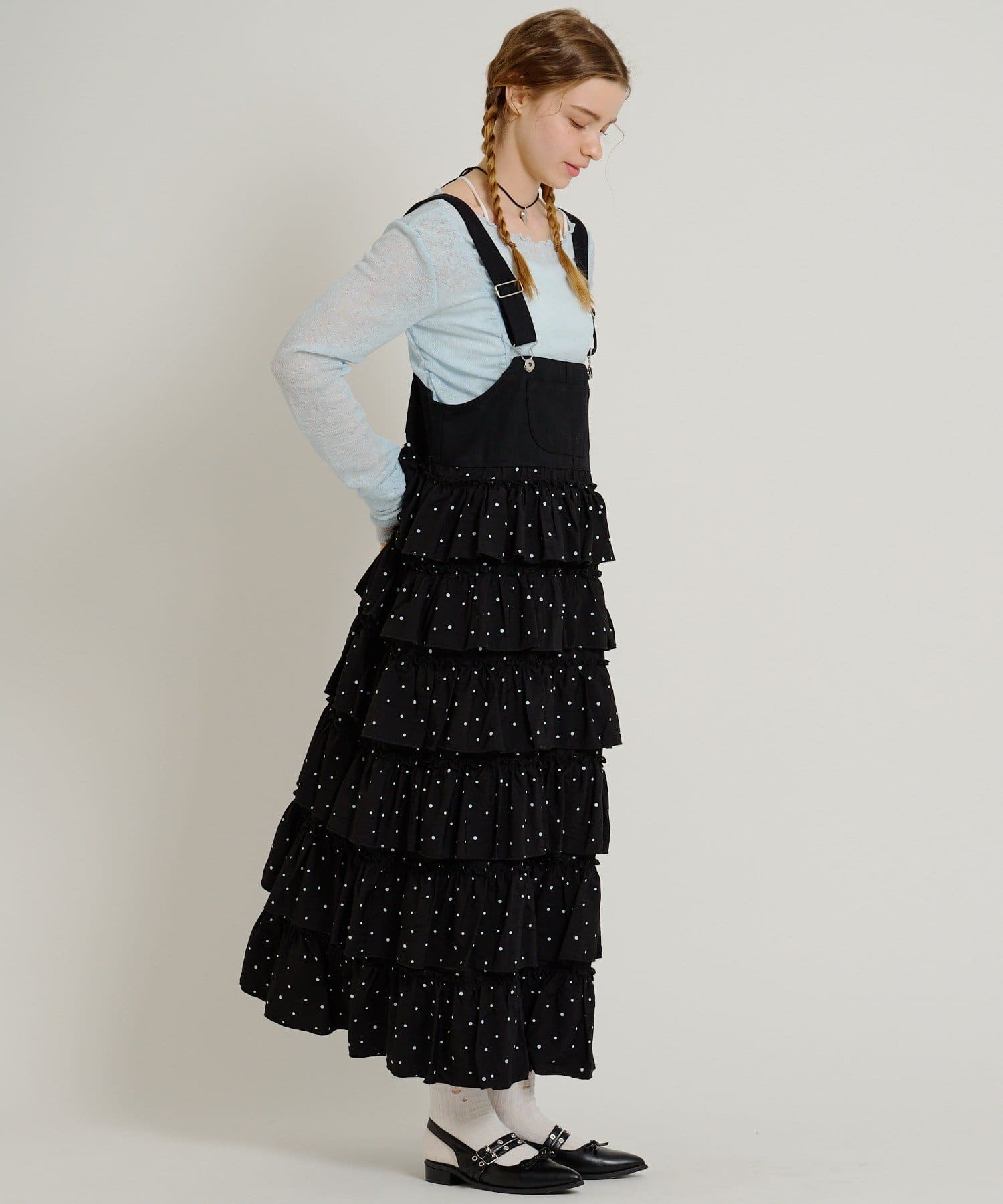 • 俐落顯瘦廓形:雖然荷葉邊有份量,但整體裙身保持修長設計,穿上後視覺上非常俐落(スッキリ見え)。